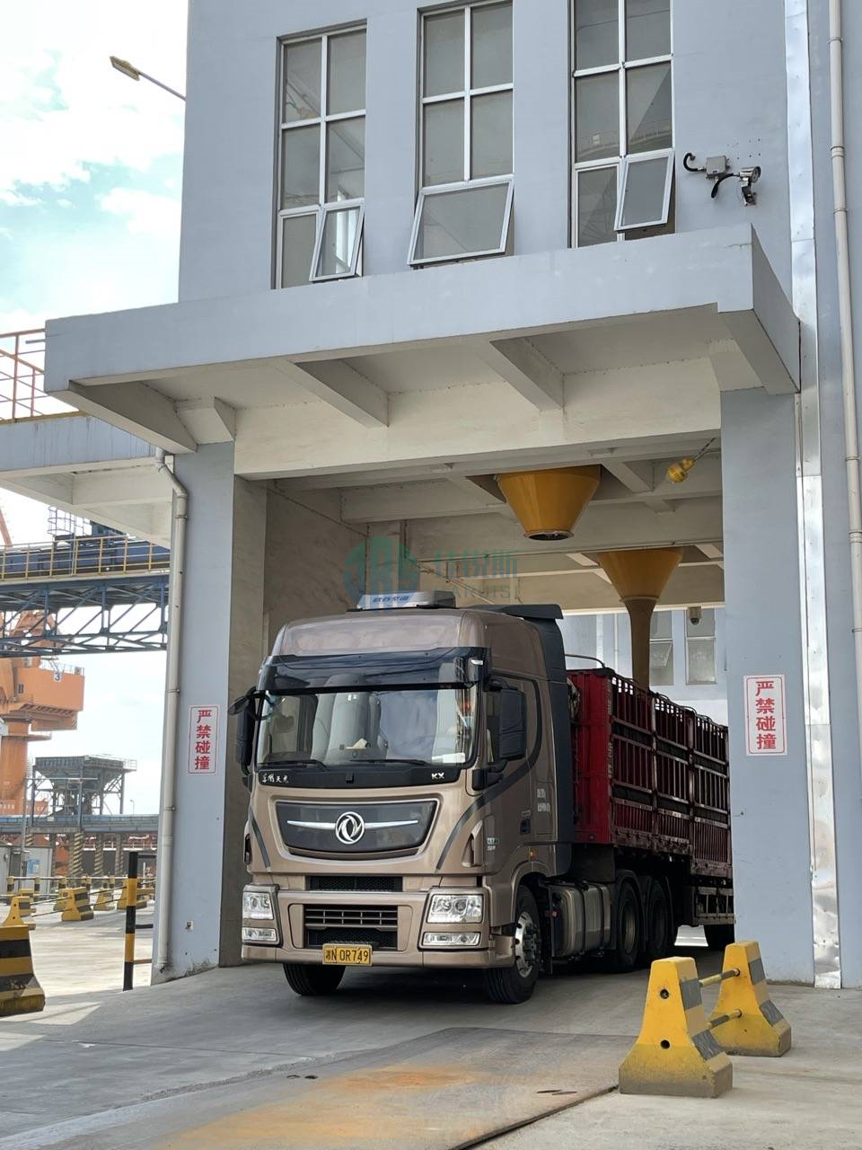 To address the inefficiencies of traditional loading towers requiring negative pressure dust collection systems (low efficiency, high energy consumption, complex maintenance), this solution integrates a Powerless Dust Suppression System into the loading tower structure, achieving: